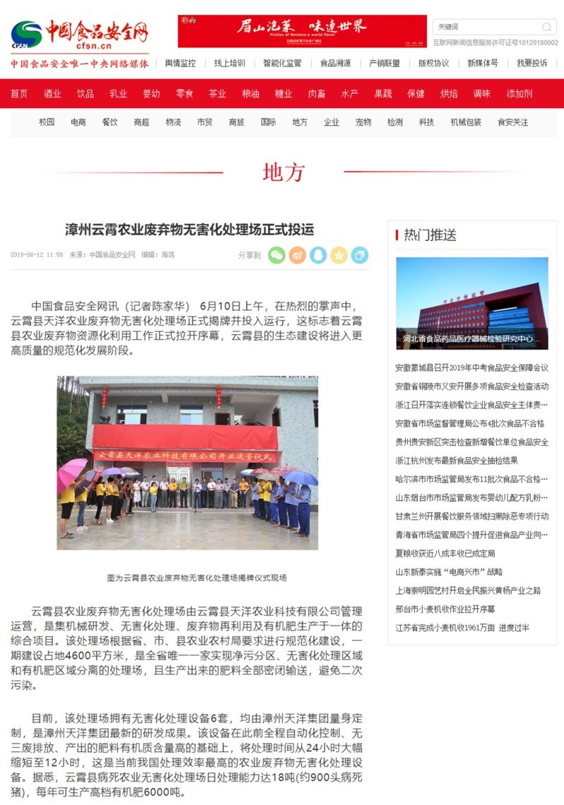 截至目前,漳州天洋集團的農(nóng)業(yè)廢棄物無害化處理設(shè)備已遍布全國大部分省市,近千臺的設(shè)備日處理農(nóng)業(yè)廢棄物(豬、牛、羊等)達上千噸,成為我國農(nóng)業(yè)廢棄物資源化利用和無害化處理行業(yè)的引領(lǐng)者。